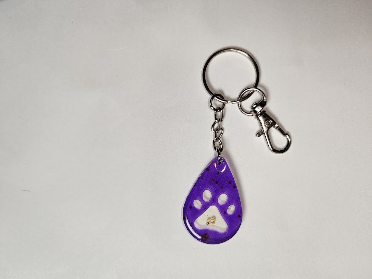 Purple floating heart and paw keychain
